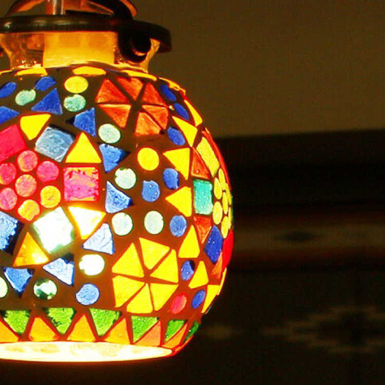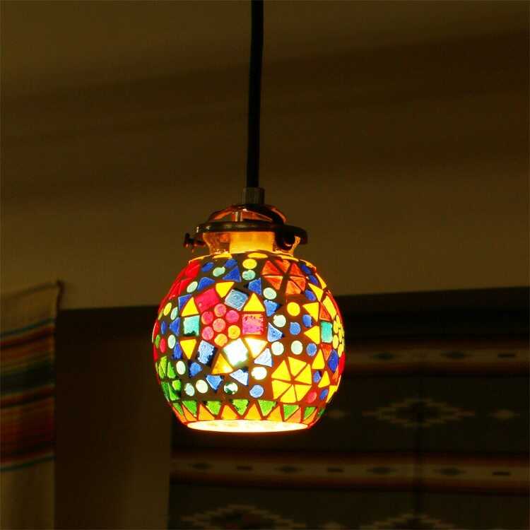 シェードは石膏にカラーガラスをはめてモザイク模様を描いています。