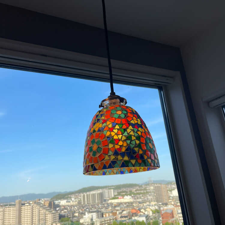 モザイクガラスのきれいな1灯ペンダントライト(ハンドメイド)