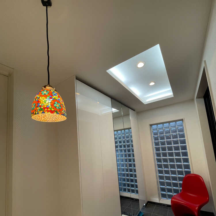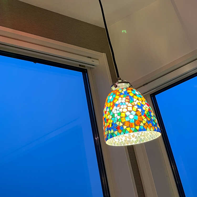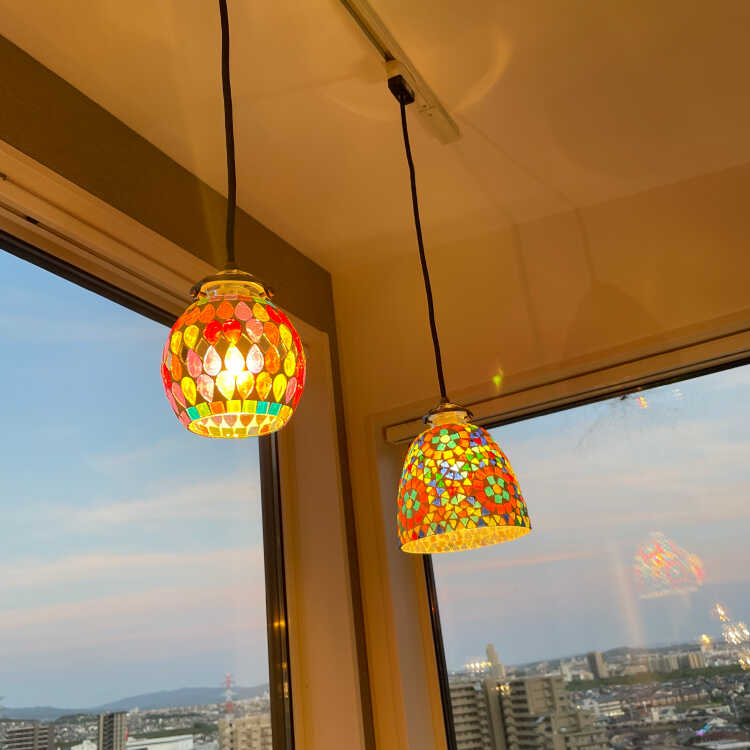ダイニングテーブルやキッチンカウンターの上には2灯並べたり、同シリーズのモザイクガラス照明と組み合わせても素敵です。