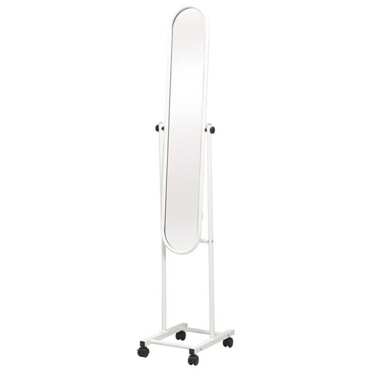 SM-1097 幅30cm・キャスター付きファッションミラー(白ホワイト/角度調節可能/飛散防止加工)