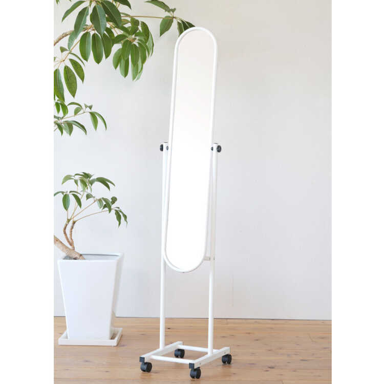 ファッションチェックに最適なミラーは、キャスター付きなのでお掃除やレイアウト変更などの際に移動させるのが楽々。