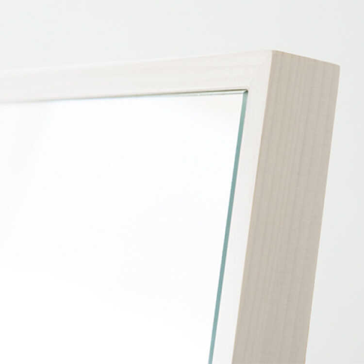 玄関や廊下などちょっとしたスペースにも飾りやすいスリムで白いウォールミラー。