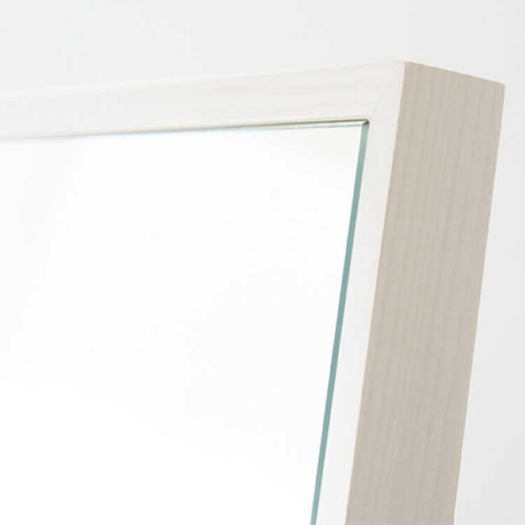 設置するだけでお部屋に奥行感が生まれ、広いインテリア空間を演出するホワイトのウォールミラー。