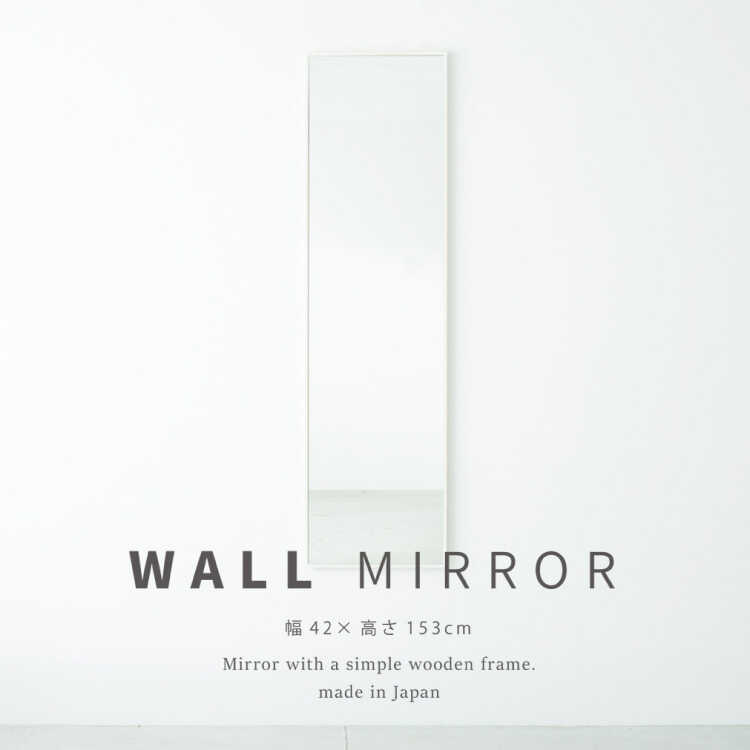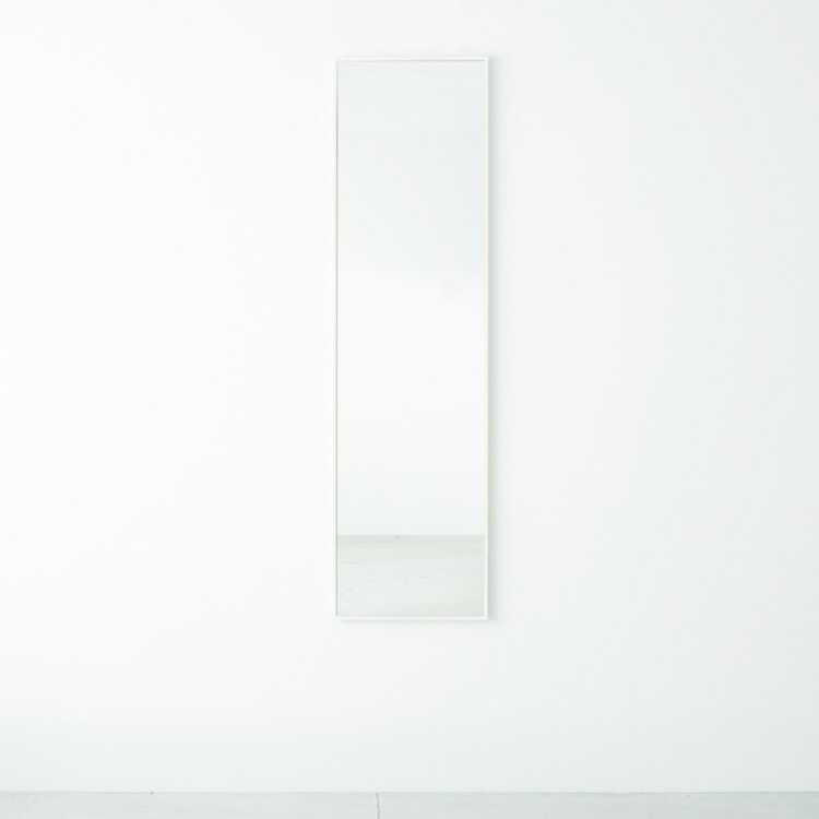 幅42cm×高さ153cm・極細枠でインテリア性の高いウォールミラー(ホワイト/日本製/飛散防止)【受注生産・納期10日前後】