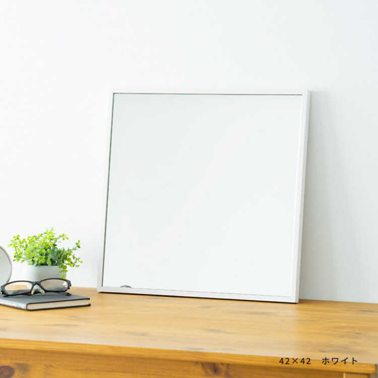 幅60cm・大きい正方形のかわいいウォールミラー(白ホワイト/日本製/飛散防止/極細枠)【受注生産・納期10日前後】