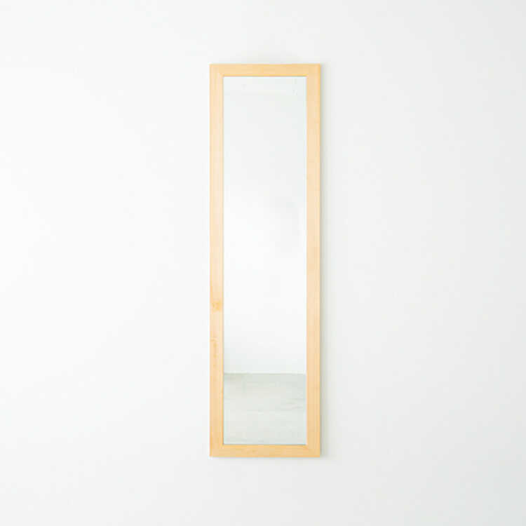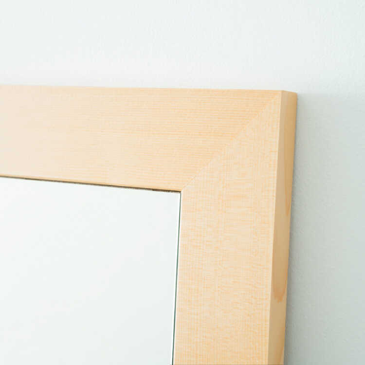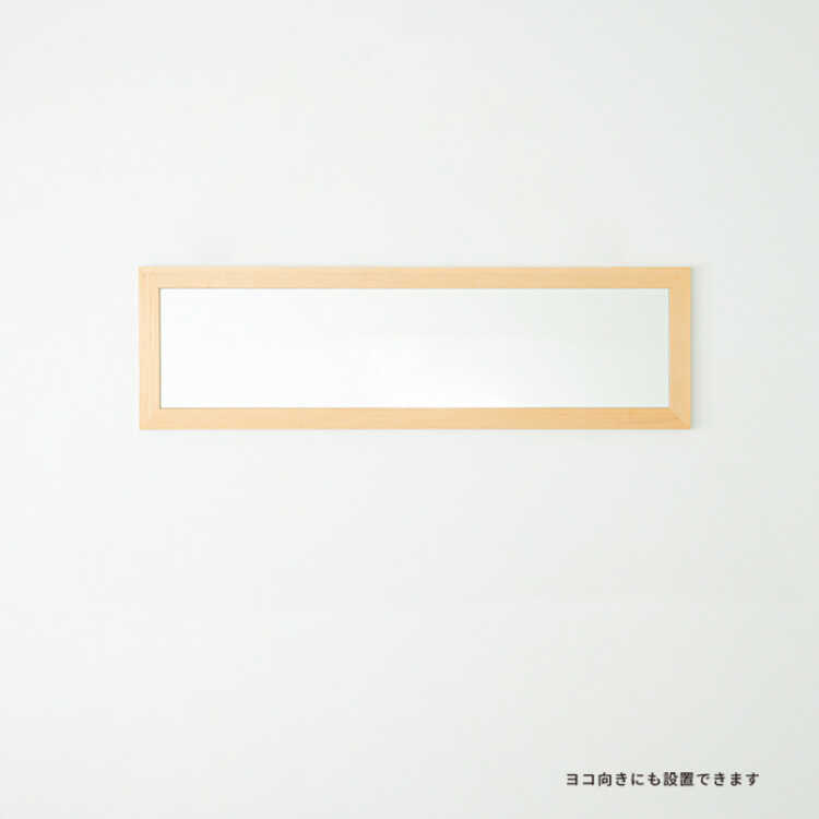 横長にレイアウトできるおしゃれなウォールミラーは、木枠にナチュラルな天然木無垢材を使用しました。