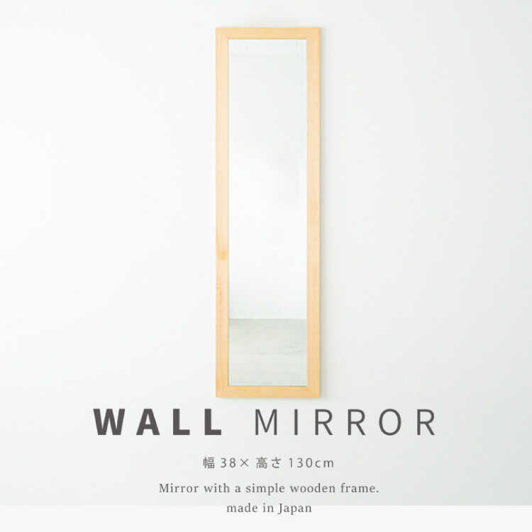 幅130cm×高さ38cm・横長サイズのウォールミラー(ナチュラル色/日本製/飛散防止)【受注生産・納期10日前後】