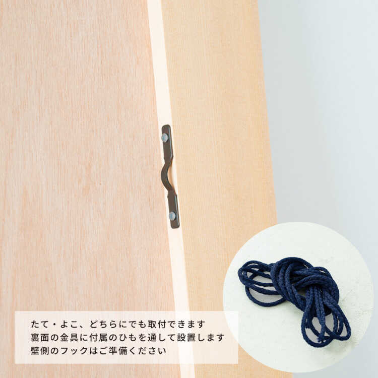 ※枠の裏にある金具に付属のひもを通して設置してください。壁側のフックはご準備して頂く必要がございます。