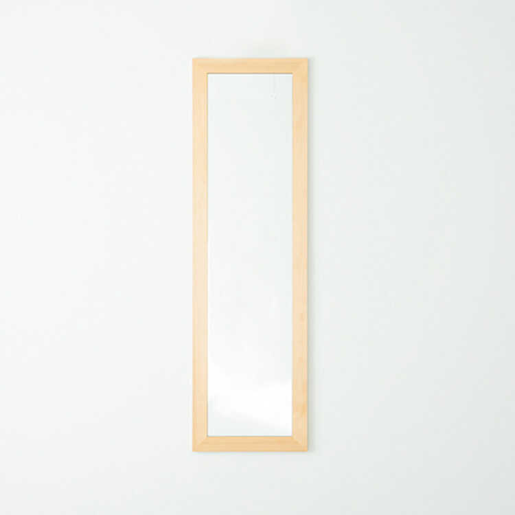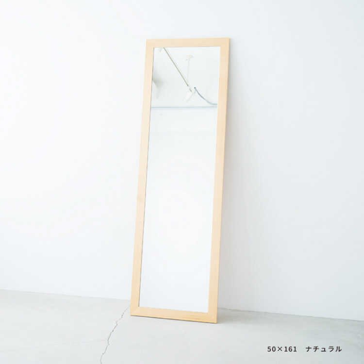 サイズ 幅50cm、奥行2cm、高さ161cm、重量約6.5kg 材質 天然木ツガ無垢材、3mm厚ミラー、ウレタン塗装 構造仕様 完成品
