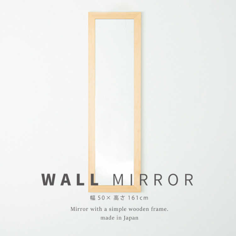 50cm×161cm・大迫力の特大サイズ壁掛け全身鏡(ナチュラル色/日本製/飛散防止)【受注生産・納期10日前後】