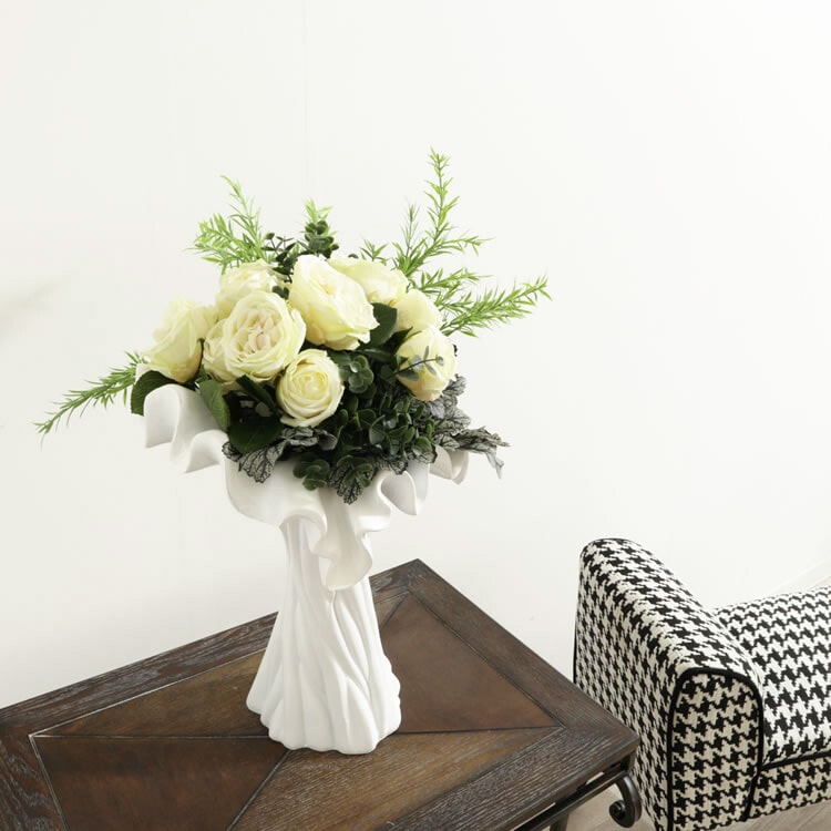 ハイデザインの白いインテリア花瓶(造花専用フラワーベース)