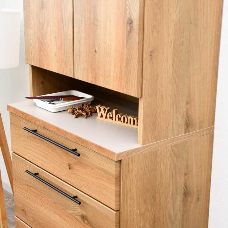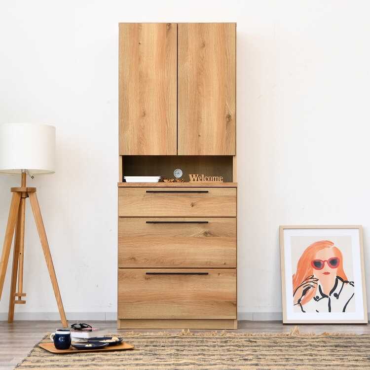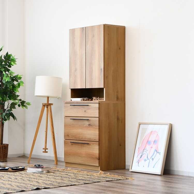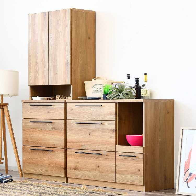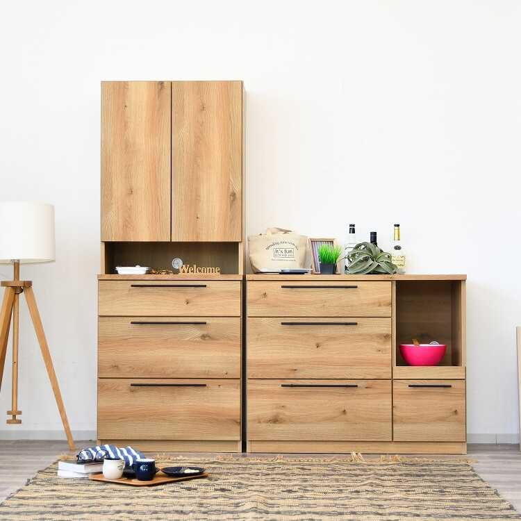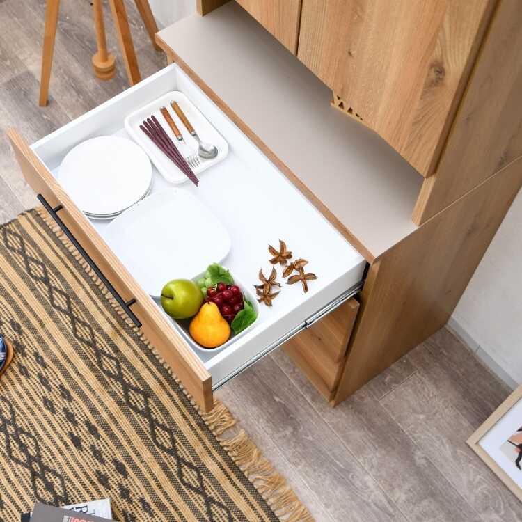 背が高いタイプのリビング収納は「扉収納」と「引出し」が組み合わされたモデルは珍しく、さらにオープンスペースまで設けられたオールインワンスタイルが使いやすいと好評です。