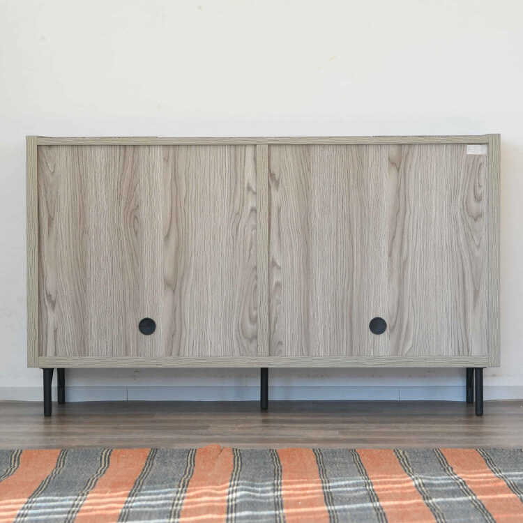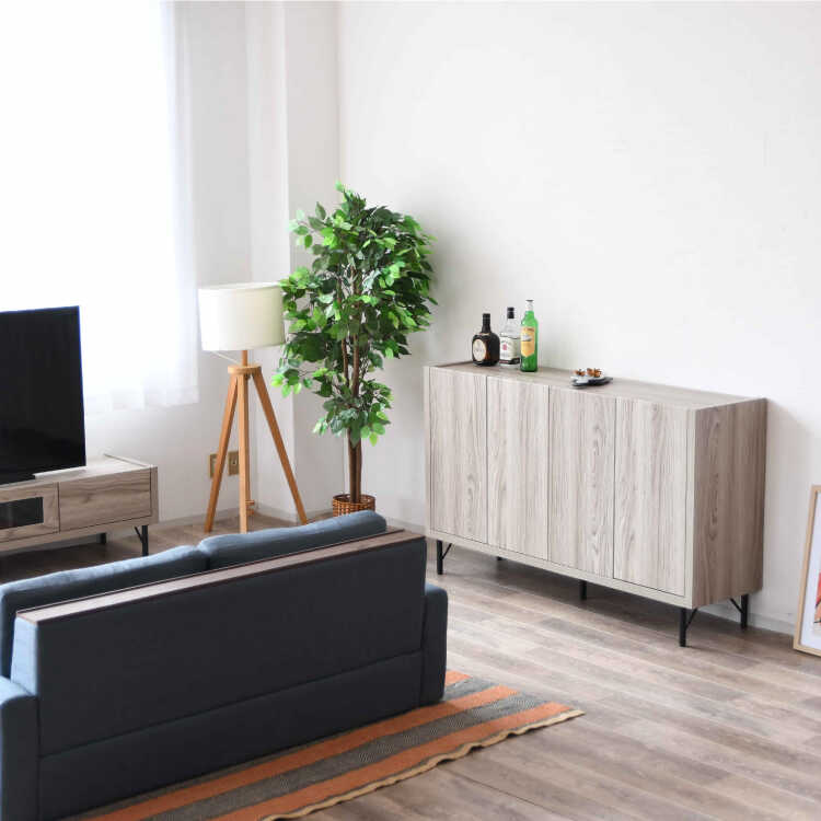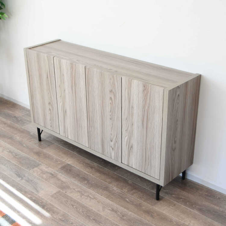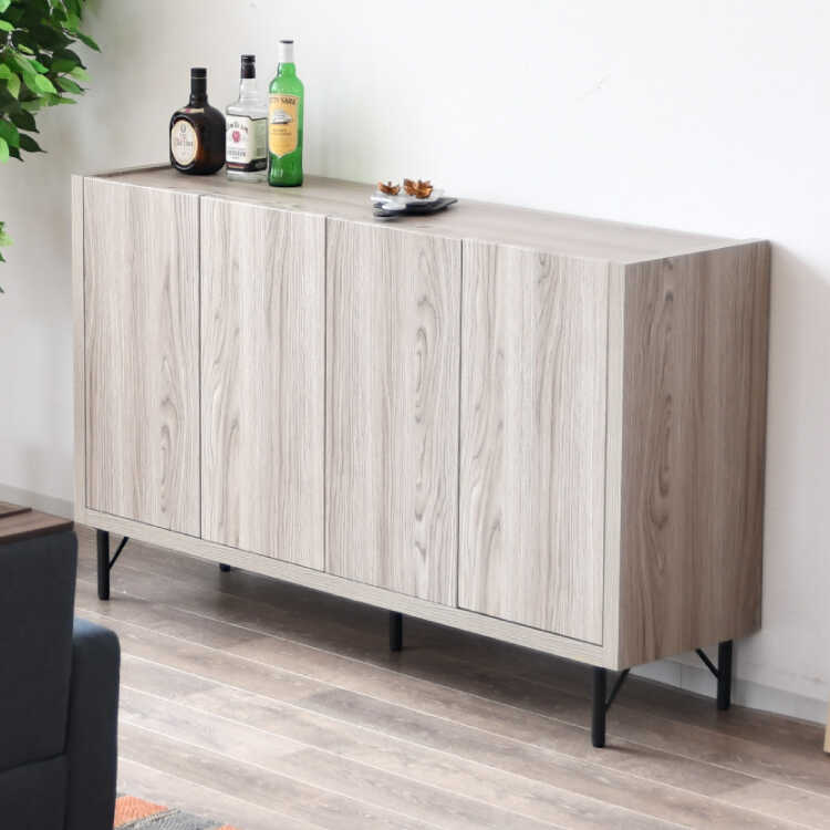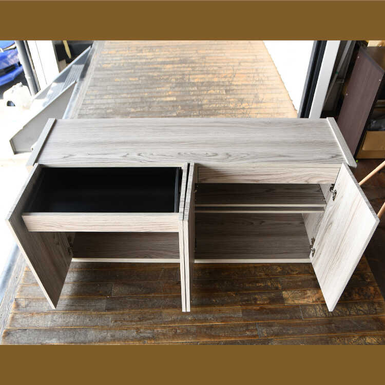 幅150cm・シャビーでかっこいい収納キャビネット(サイドボード・完成品・グレー木目)
