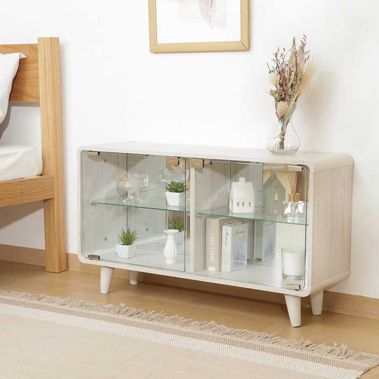 幅80cm・アクスタ&フィギュア収納におすすめ!ガラスコレクションケース(ホワイトウォッシュ色)