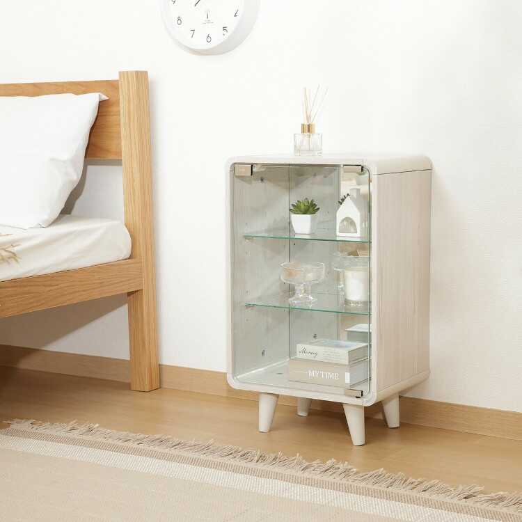 幅36cm・アクスタ&フィギュア収納におすすめ!ガラスコレクションケース(ホワイトウォッシュ色)
