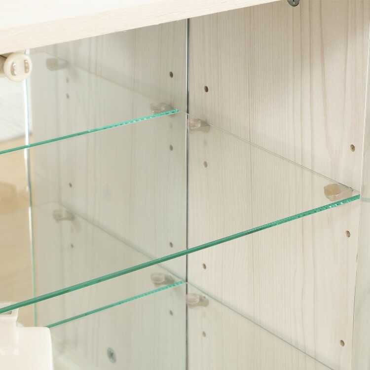 仕様補足 耐荷重…ガラス棚板1枚あたり3kg、底板1枚あたり5kg
