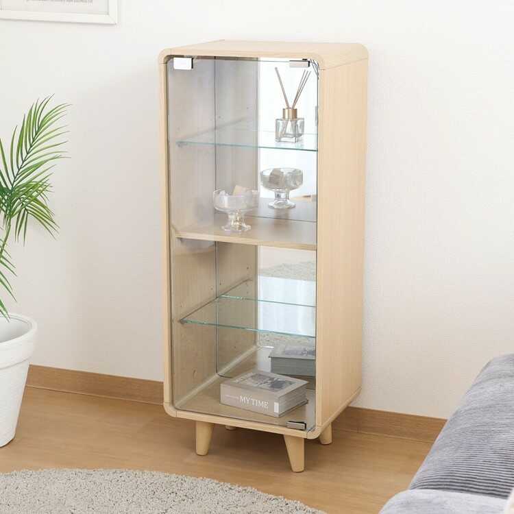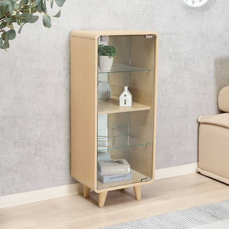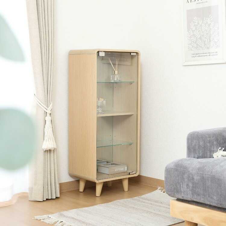 四つ角がアール曲線になった、コロンとした丸いシルエットが可愛いコレクションハイキャビネット。
