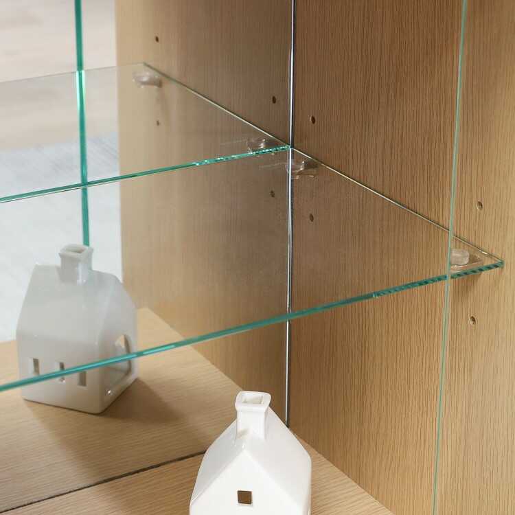 内部は中央に固定棚が1枚、上下に1枚ずつガラス棚が付属しているので、最大で4つのスペースに区切れます。