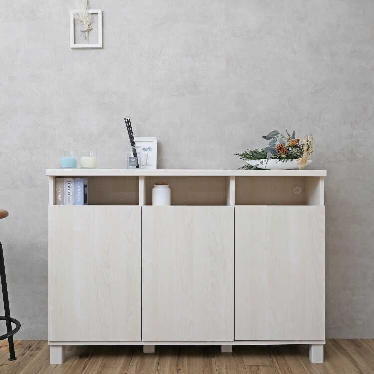 幅110cm・日本製・F★★★★サイドボード(トール型テレビ台で使える・木目ホワイト)
