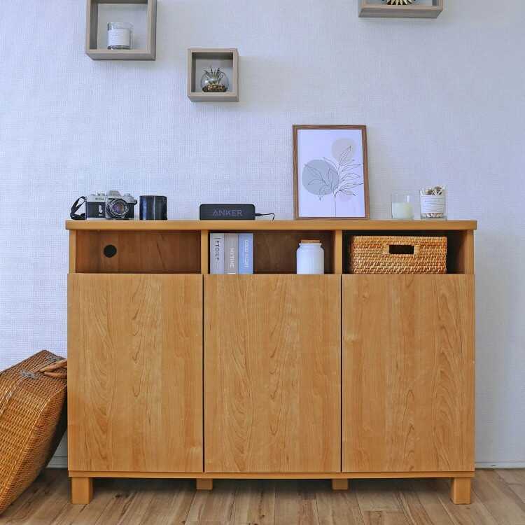 幅110cm・日本製・F★★★★サイドボード(トール型テレビ台で使える・ナチュラル色)