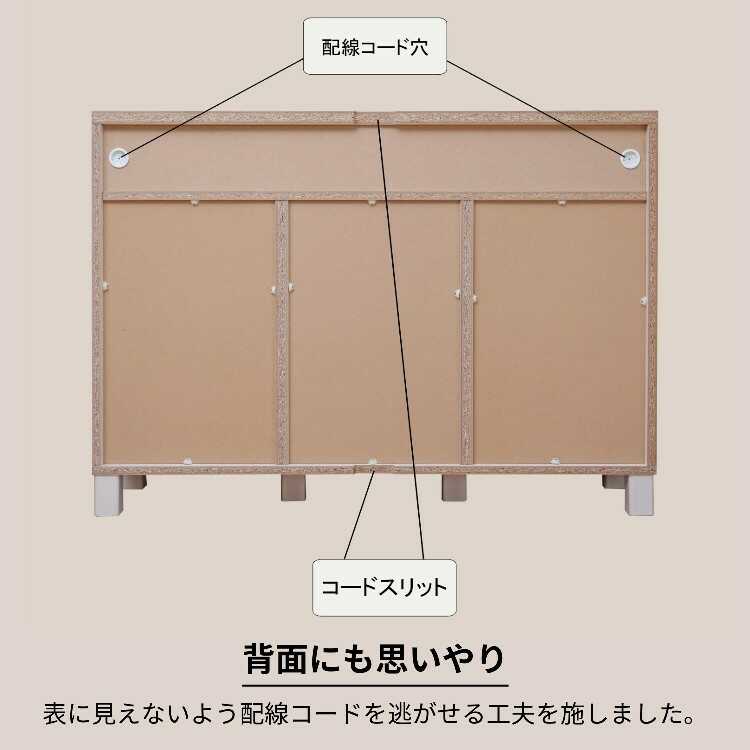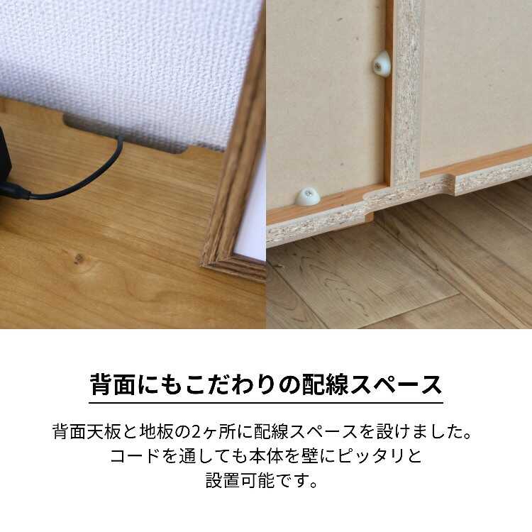 天板と地板の背面には壁にピッタリつけても配線がしやすいよう、コードスリットを設けています。