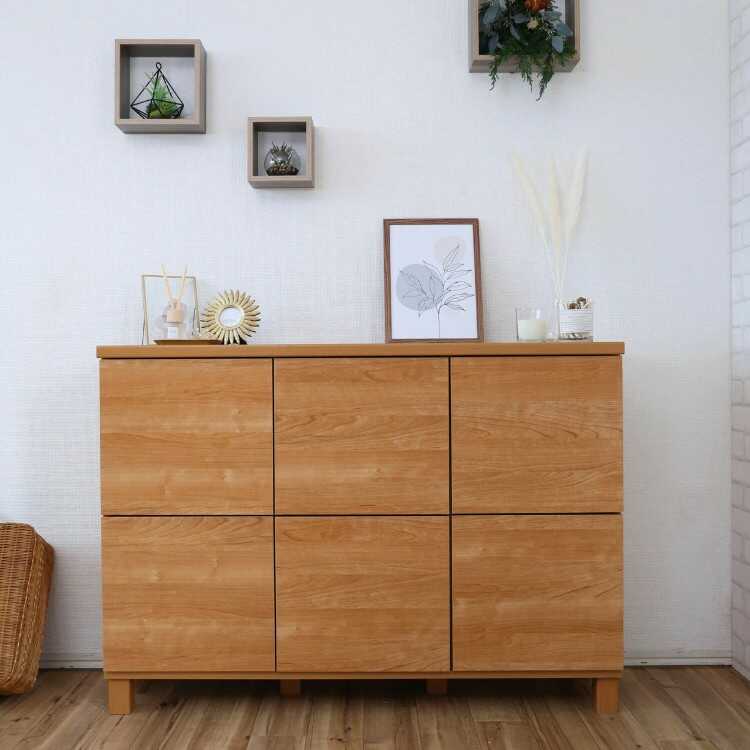 幅110cm・日本製・F★★★★・6枚扉サイドボード(トール型テレビボードで使える・ナチュラル色)