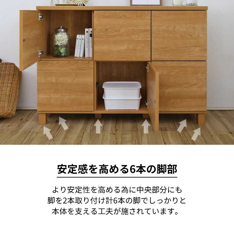 幅110cm・日本製・F★★★★・6枚扉サイドボード(トール型テレビボードで使える・ライトブラウン)