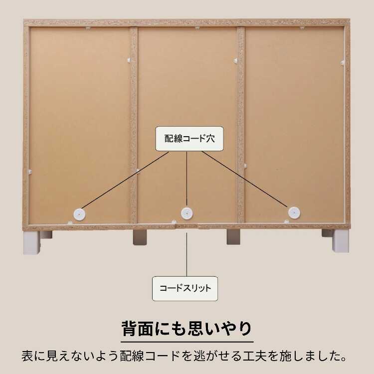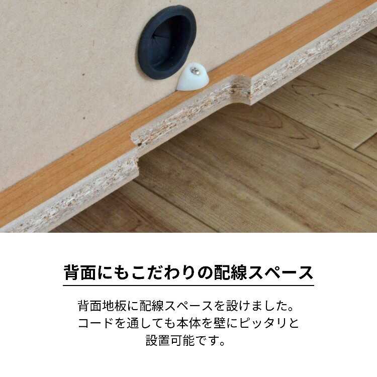 6枚の扉のうち、3ケ所に配線用のコード穴が付いています。Wifiルーターの置き場にピッタリ。また、テレビ台の横に設置して、録画機やゲーム機の収納にも便利です。