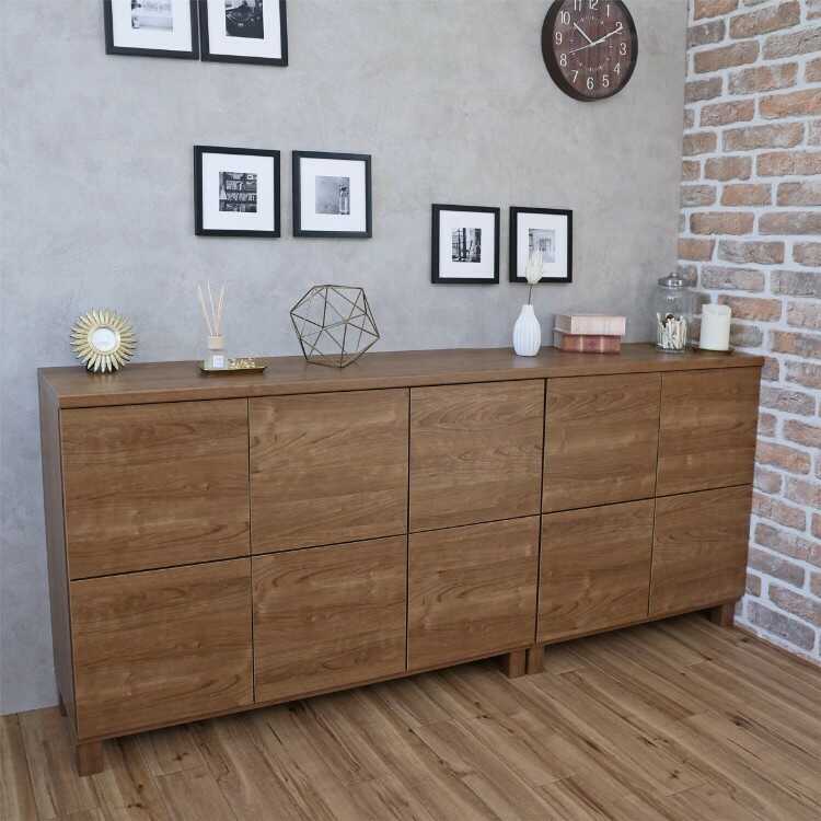リビングでサイドボードとして以外にも、トール型テレビボード、キッチンカウンター下収納など、お部屋の用途に合わせて対応できる万能型の収納キャビネット。