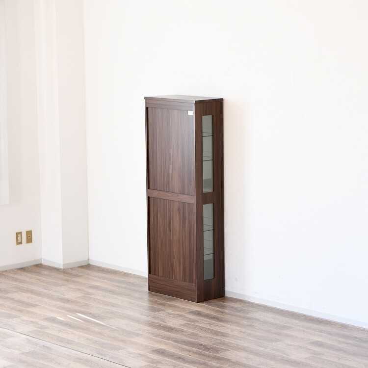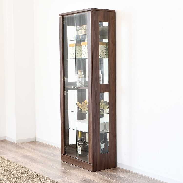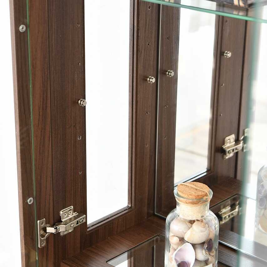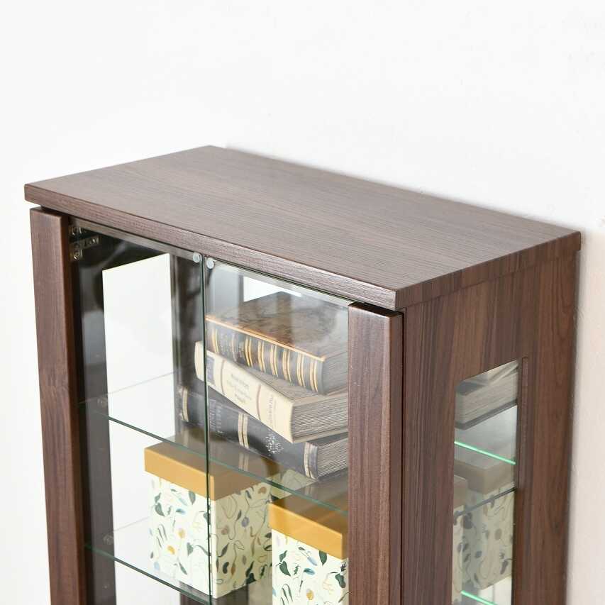 幅60cm・ブラウン木目ガラスコレクションキャビネット(完成品)