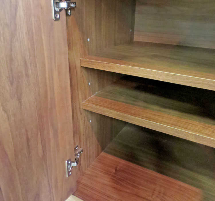 目に付きにくい収納内部にまで綺麗な化粧シートが貼られた上質さ。