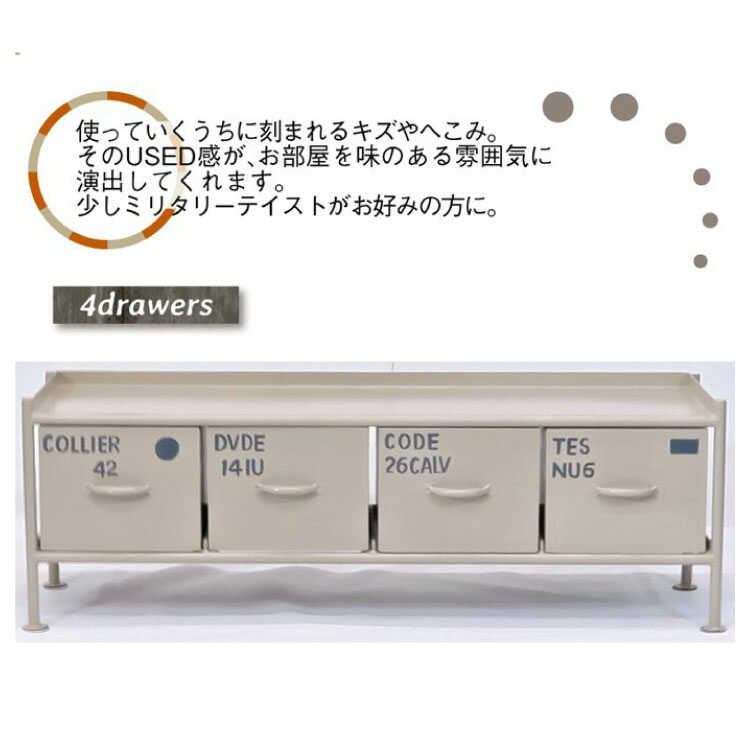 幅111cm・かっこいいスチール製ローチェスト1段×4列(ベージュ色/完成品)