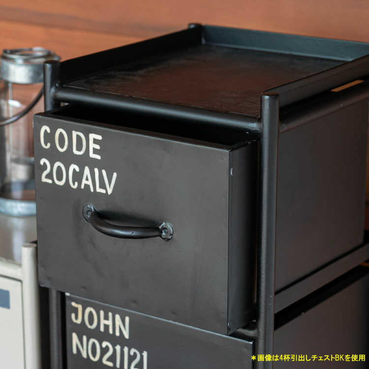 ※スチール特有の質感や経年変化をお楽しみいただけるチェストです。ご使用に連れてできる傷や凹み、錆びなどを風合いとしてお楽しみください。