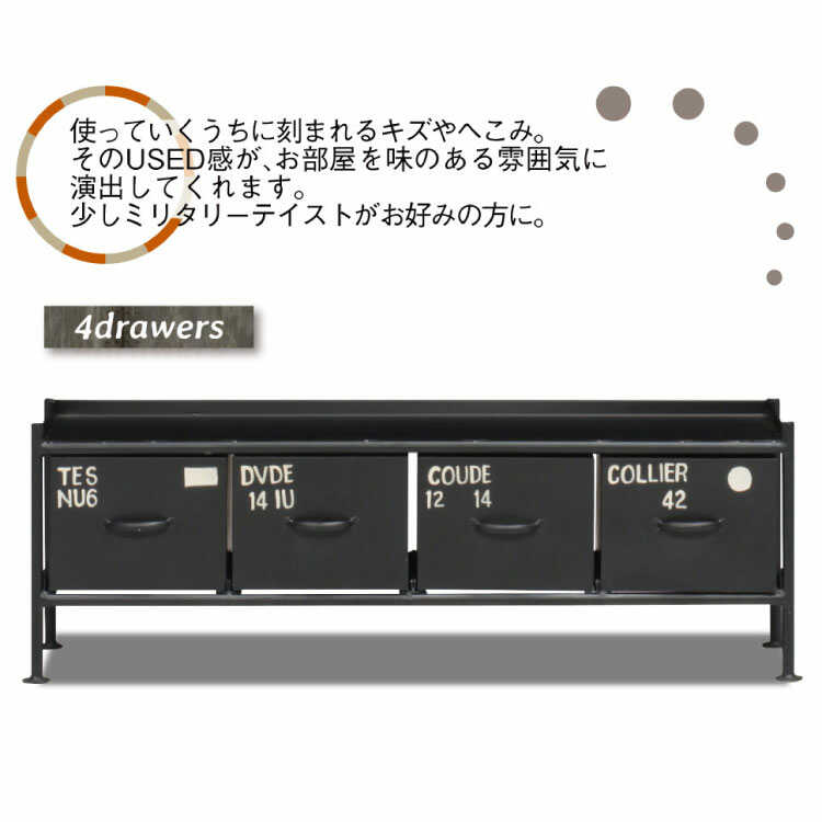 かっこいいブラックカラーで塗装し、引出し4杯の収納をご用意しました。