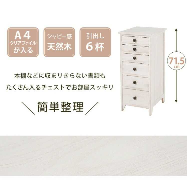 幅31cm・スリムチェスト6段(A4サイズ収納可能/完成品)