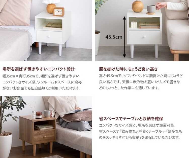 ナイトテーブルとして使える白色ミニチェストならインテリアル