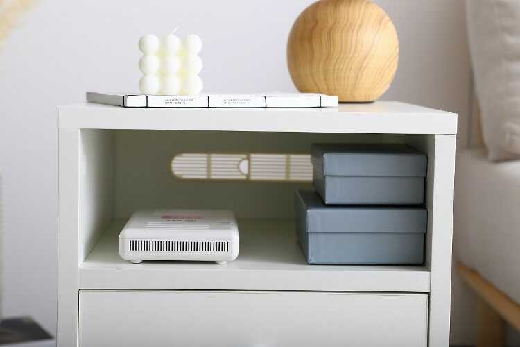 さらに背面にはコード穴を設けているため、ルーターやタブレットの充電の際にコードがごちゃつくのを軽減してくれます。
