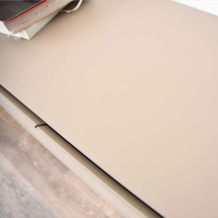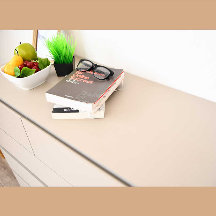 表面素材は一般的なプリント化粧紙よりも質感が高く、キズ・汚れにも強い強化シートを使用しています。