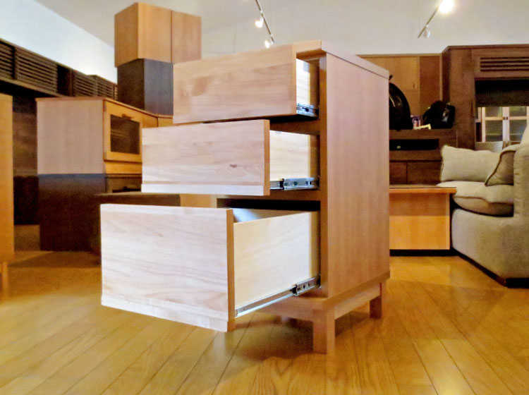 天然木アルダー無垢材を自然塗装で仕上げた高品質さが魅力の幅38cmリビングチェスト。
