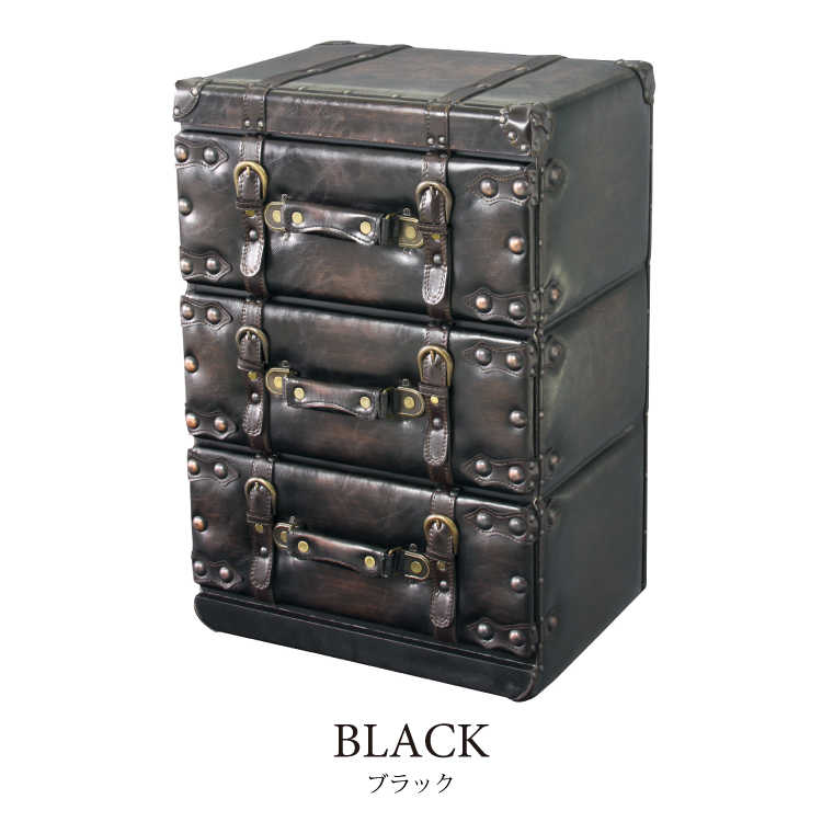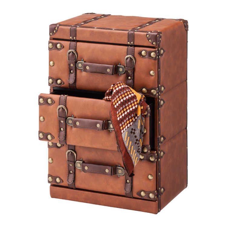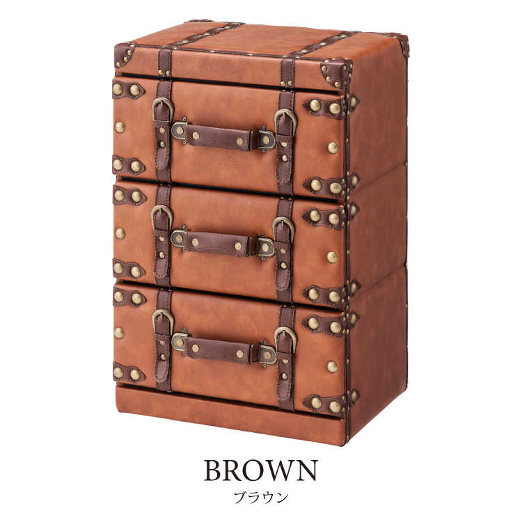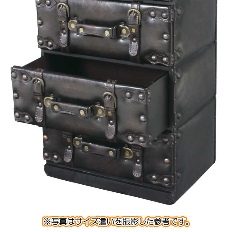 幅41cm・合成皮革製・トランクケースデザイン・3段チェスト(完成品)