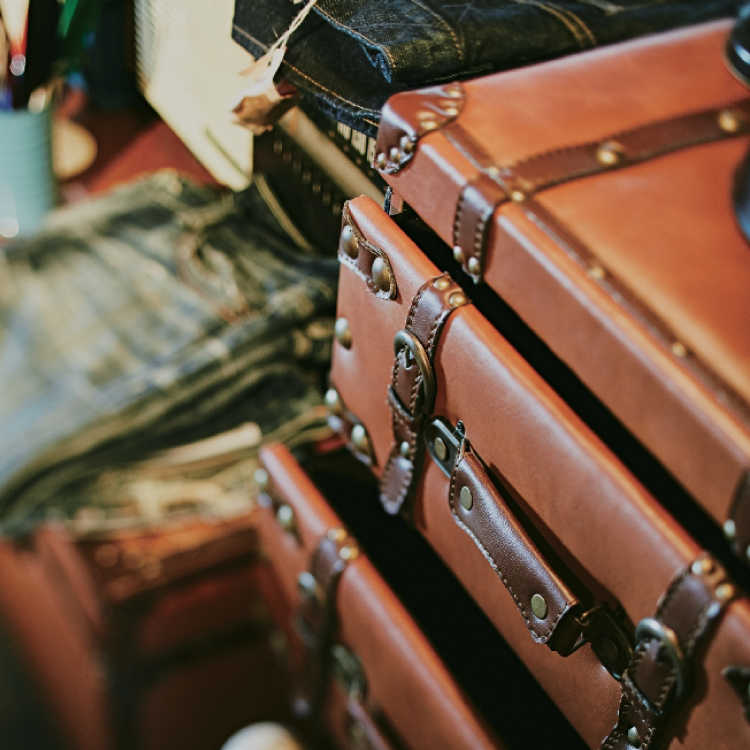 トランクケースを積み重ねたようなデザインがセンス溢れる3段チェスト。
