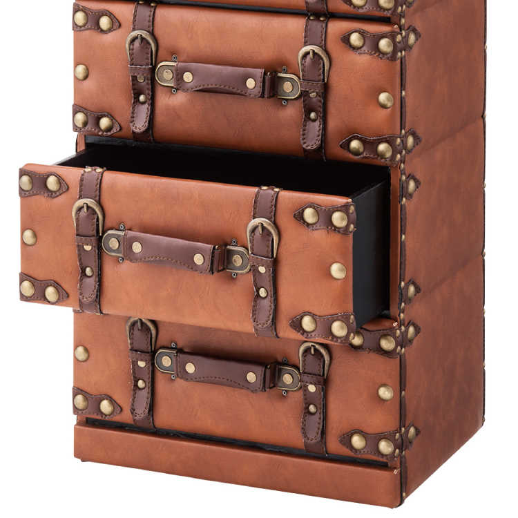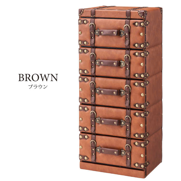 幅41cm・合成皮革製・トランクケースデザイン・5段チェスト(完成品)