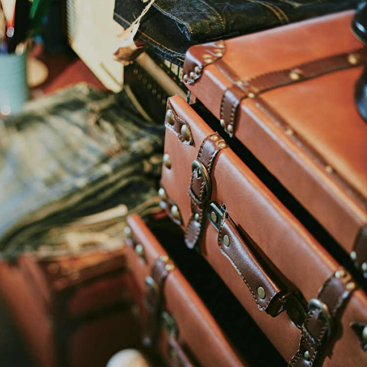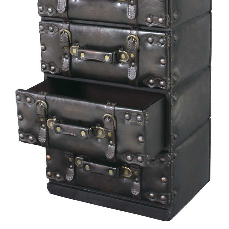 トランクケースを積み重ねたようなデザインがセンス溢れる5段チェスト。