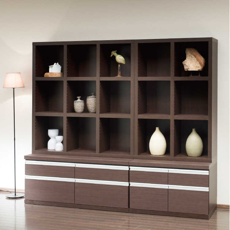 日本製シンプルローチェストは単品での使用はもちろん、同シリーズのミディアムタイプ・ハイタイプのオープンラックと組み合わせて使用していただくのもおすすめです。