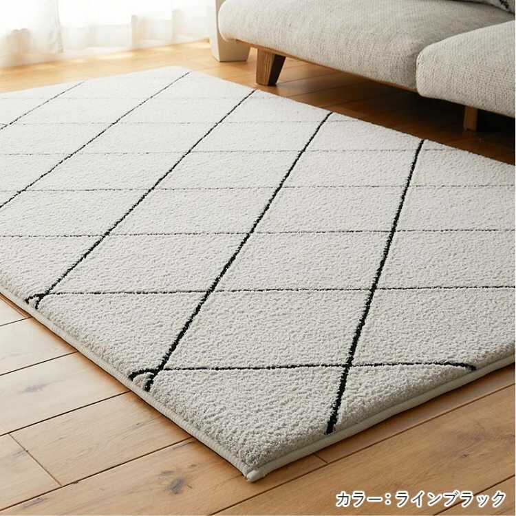 無地のグレーにブラックのラインを引いた、シンプルながらモダンな雰囲気のラグマット。