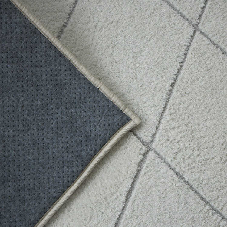裏面は全面タイプのすべり止め付きで、掃除機をかける際もラグがズレにくく、転倒防止にも効果があります。