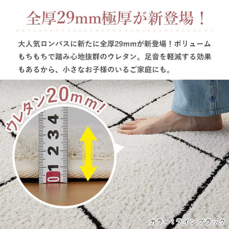 ウレタン20mm、全厚29mmの分厚いボリュームでふっくらもちもちの踏み心地。