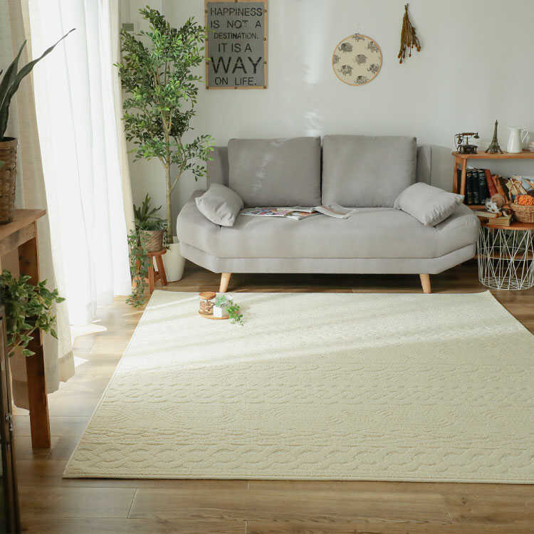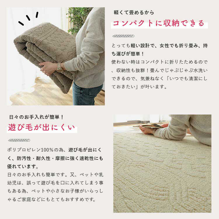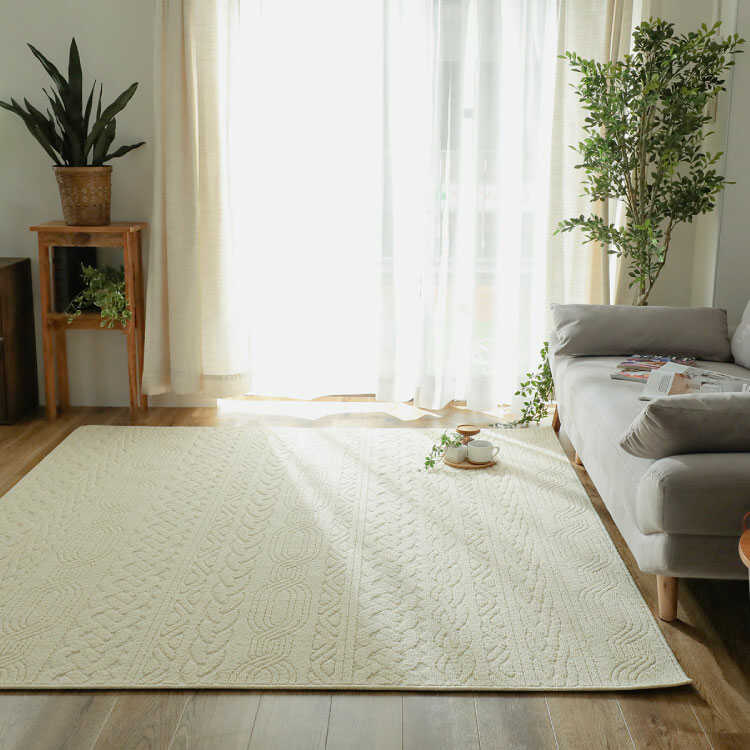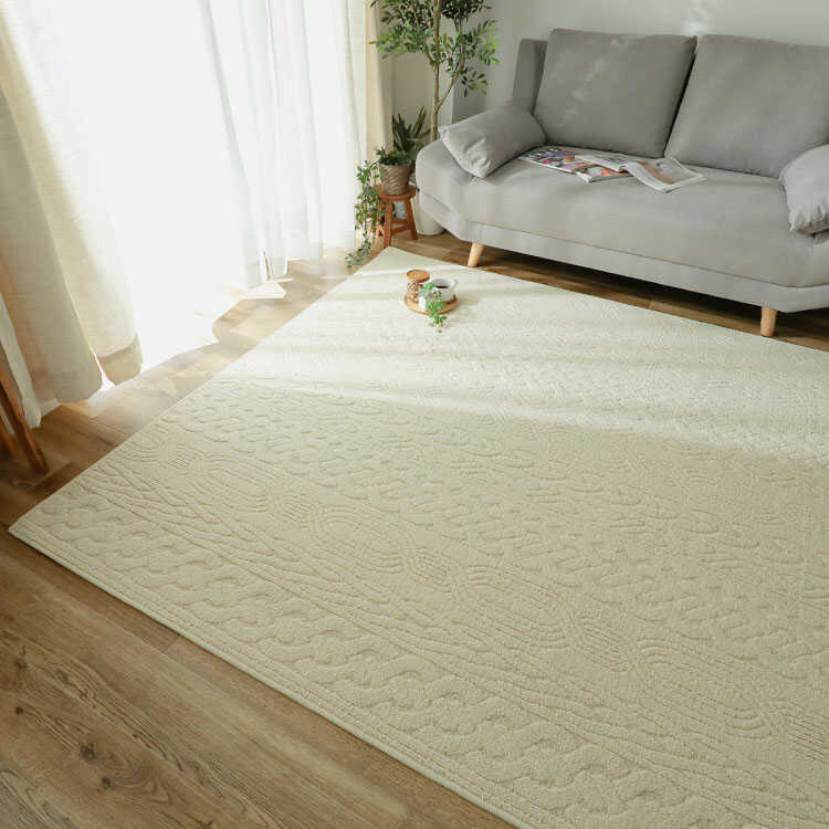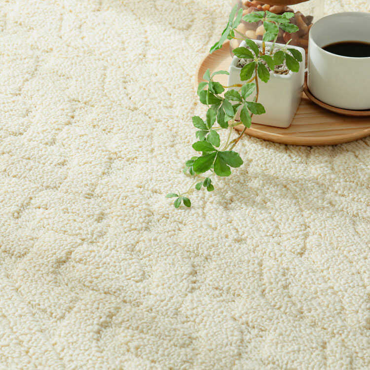 洗濯機で洗える、遊び毛が出にくい、ホットカーペット・床暖房対応注意事項 ※写真はシリーズ共通の参考イメージ画像です。販売商品は190cm×190cm・アイボリーとなります。