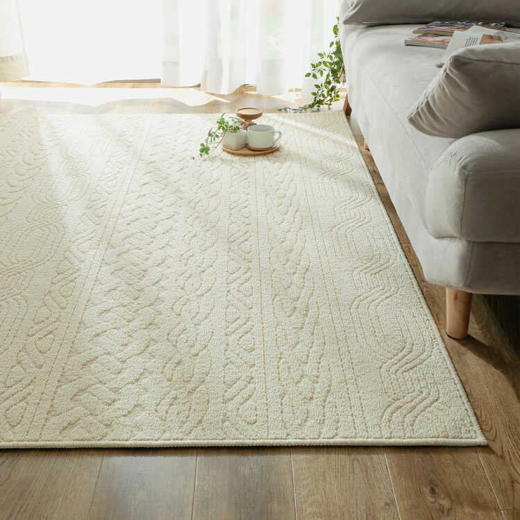 身体の健康にも配慮した抗菌加工済みの国産ラグマットは、表面にアラン編み模様を使用したおしゃれなデザイン。