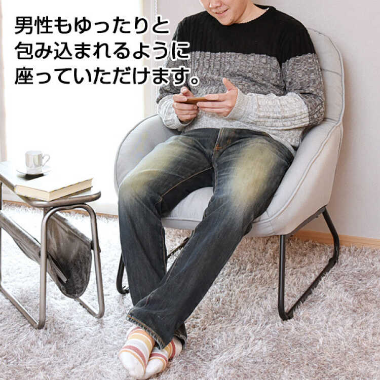 モコモコした座面・背もたれが可愛らしい布ファブリック&スチール製のおしゃれ1人掛けソファ。